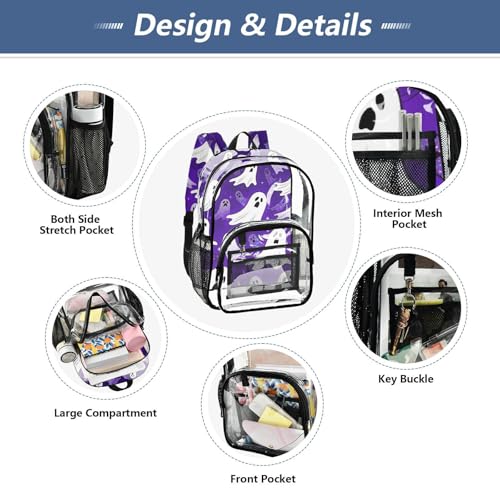 More information about Happy Halloween Purple School Clear Backpack Clear Book Bag For Girls See Through Transparent Heavy Duty Backpack