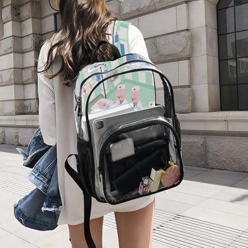 Cartoon Doctor Rabbits Cute Green School Clear Backpack Clear Book Bag For Boys See Through Heavy Duty Bag 7