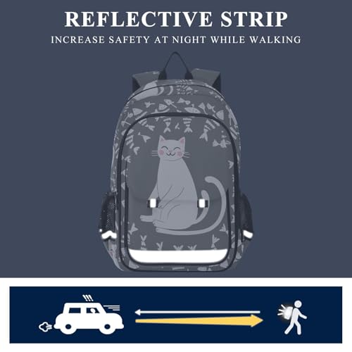 Bolaz Kids' School Backpack with Safety Reflectors Strip,Great for Boys & Girls Ages 6–12,Circle Cat 3