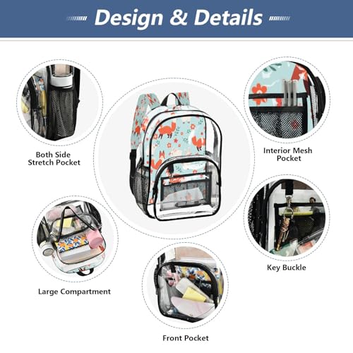 More information about Clear Backpack for School Fox Pattern Transparent Bookbag for Girls See Through PVC Boy Backpacks