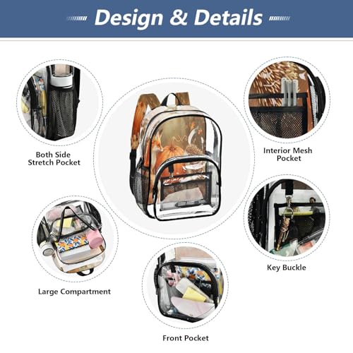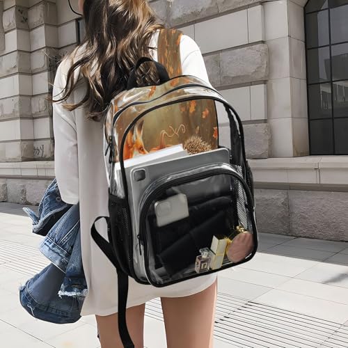 More information about Clear Backpack for School The Lovely Furry Tail Fox and Hedgehog Surround A Big Orange Pumpkin Transparent Bookbag for Girls See Through PVC Boy Backpacks