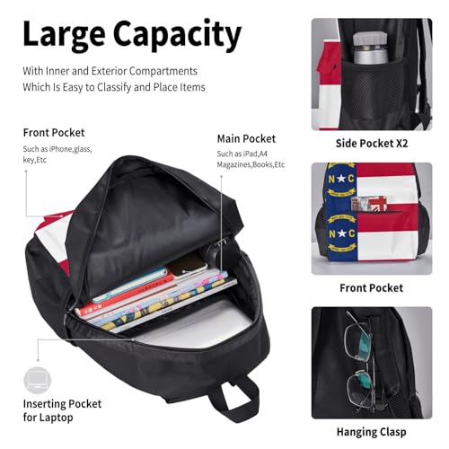 • Ideal For Various Occasions: This North Carolina State Flag Print Multifunctional Stylish Casual Bookbags Set Is Perfect For Weekend Getaways, Cycling, Camping, Fitness, Travel, Shopping, And More. It Makes An Excellent Gift For Birthdays, Valentine'S Day, Thanksgiving, Christmas, And Other Special Occasions.