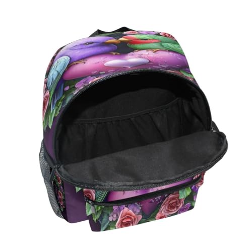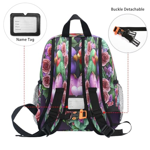 panksolu Love Heart Two Parrots Toddler Backpack for Boys Girls,Kid Backpack with Chest Clip and Name Tag, S 5
