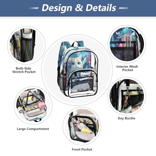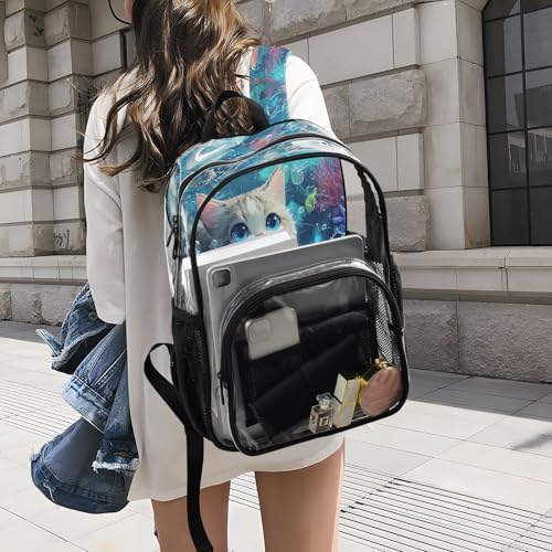 Cute Cat Fish Coral Reef Clear Backpack Heavy Duty See Through Transparent PVC BookBag for Kids Boy Girl School Work 4