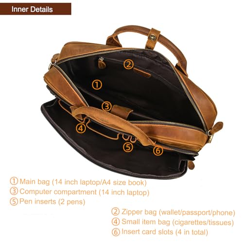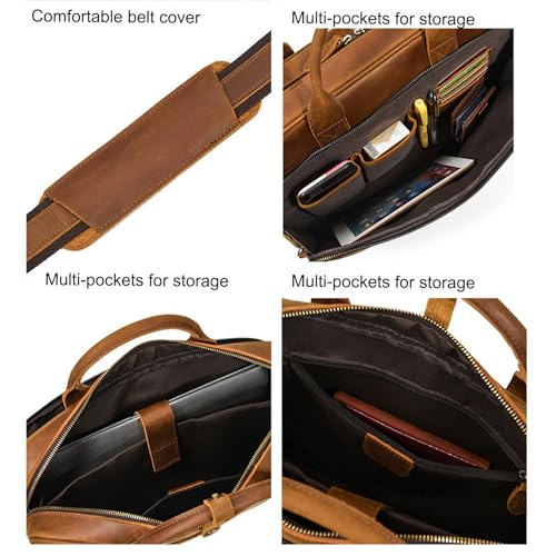 • MADE TO LAST: handmade by master craftsmen with experiences for generations. Unique handmade process, hand-dyed by vegetable tanning method to full-grain cowhide leather. It preserves the natural leather patterns and make each briefcase unique