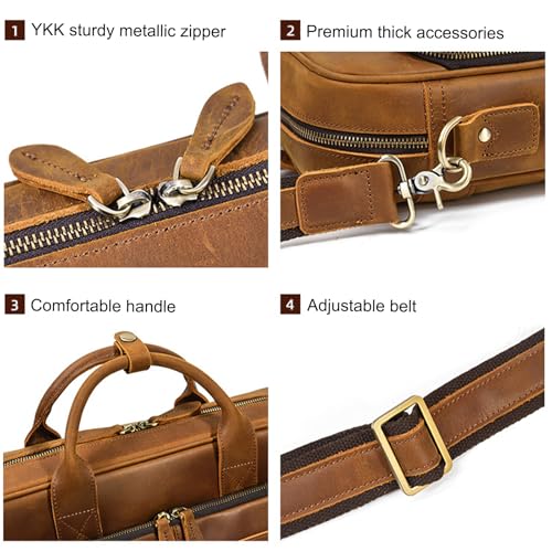 • PREMIUM YKK ZIPPER AND ACCESSORIES: we paid high attention to all DETAILS to make the messenger bag in great quality. Leather doctor bag with Reliable hardware, YKK zipper, detachable straps, tear-resistant lining