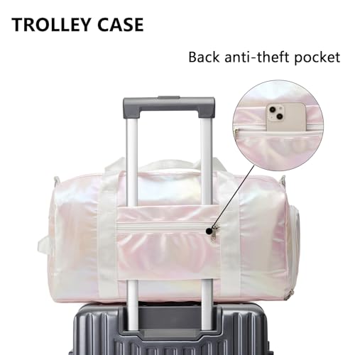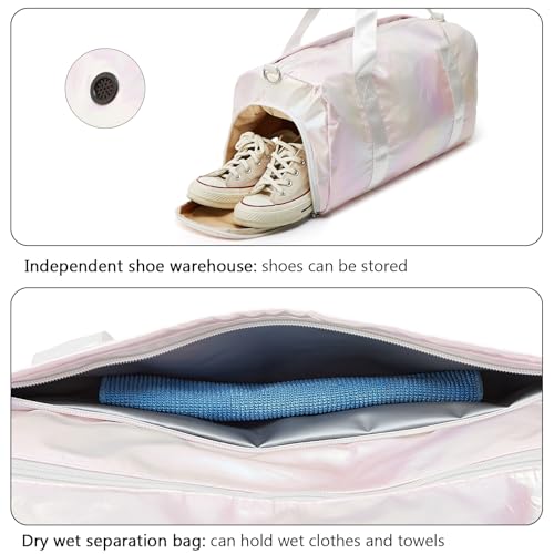 ZHIERNA Sports Gym Dance Bag for Women Girls, Shimmery Waterproof Duffle Travel Bag With Shoes Compartment and Wet Dry Pocket (Pink) 6