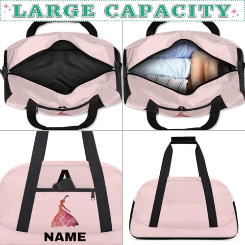 Personalize-Kids-Sports-Duffel-Bags With Custom Name Text Carry-On Overnight Travel Gym Lightweight Dance Pattern Sports Bags For Girls Boys Kids,Pink 2 5
