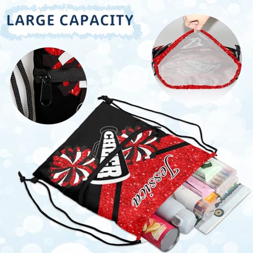 Personalized Drawstring Backpack Cheer Bag Cheerleader Bags, Red Glitter Custom Sport Gym Bag 7