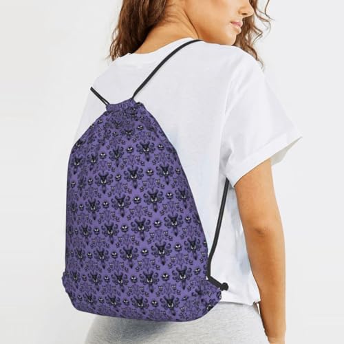 HOT ! Haunted Mansion String Drawstring Backpack Cinch Bag Polyester Sackpack For Beach Picnic Outing