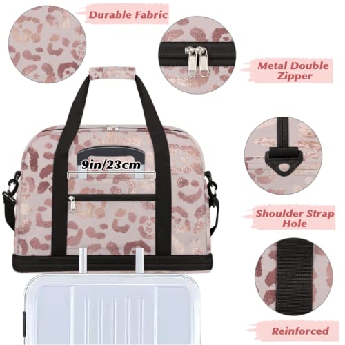 Leopard Print Cheetah Rose Gold Travel Duffle, Sports Gym Bag With Shoes Compartment, Weekender Overnight for Women Men 6