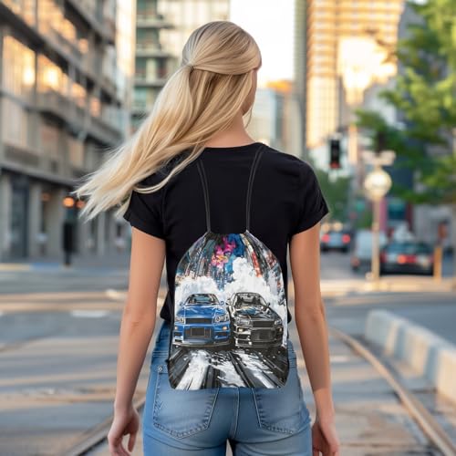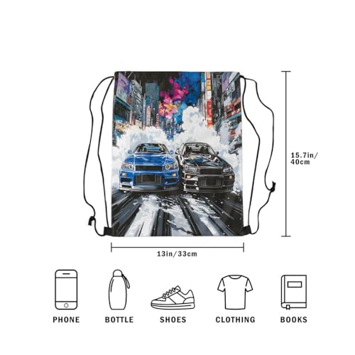 HOT ! Speed Racing Car Drawstring Backpack,Modern Extreme Sports Drawstring Bag,Watercolor Street Building Adjustable Draw String Bag,Lightweight