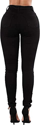 Women's Stretchy Ripped Hole Skinny Jeans Distressed High Rise Slim Fit Denim Pants Trouser Butt Lifting Distressed Pant (Small,Black) 6