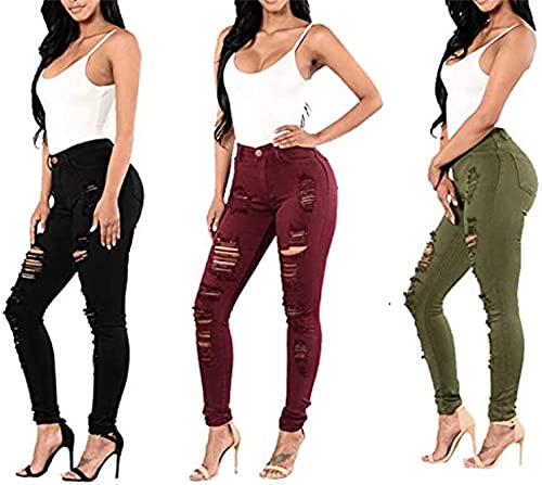 HOT ! Women's Stretchy Ripped Hole Skinny Jeans Distressed High Rise Slim Fit Denim Pants Trouser Butt Lifting Distressed Pant (Small,Black)