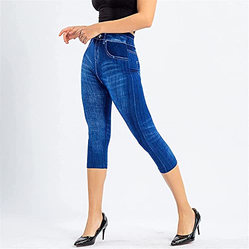 Generic Pull On Jeans for Women Casual Stretchy High Waisted Skinny Capri Leggings Crop Denim Pants Tights with Back Pockets 5