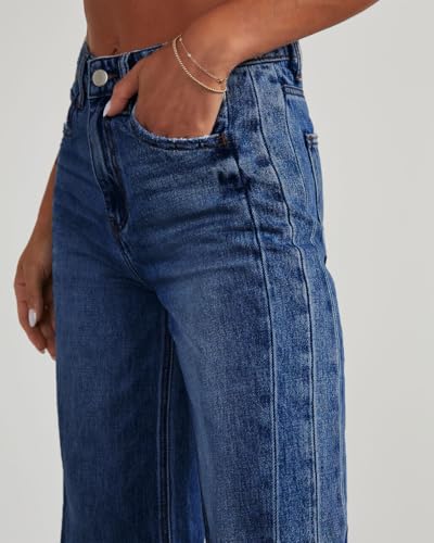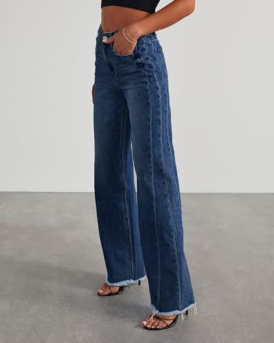 Womens Wide Leg Jeans Casual High Waisted Stretchy Straight Leg Jeans Raw Hem Loose Trendy Denim Pants 6