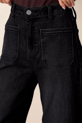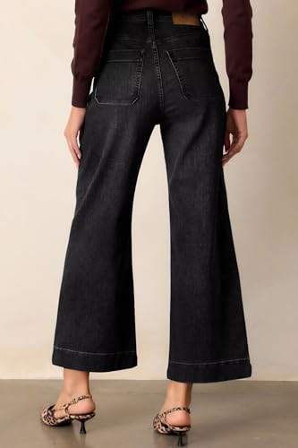 HOT ! Allimy Women's High Waisted Cropped Wide Leg Jeans Stretchy Loose Denim Pants with Front Patch Pockets