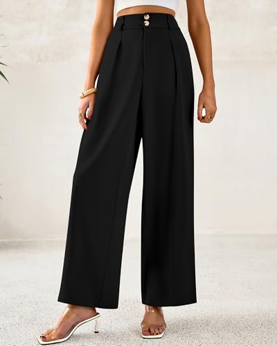 More information about BTFBM Women Wide Leg Dress Pants 2025 High Waisted Button Pleated Business Casual Trousers Office Work Palazzo Pants