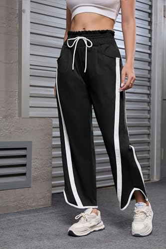 HOT ! Track Pants Women Casual Drawstring Barrel Pant Lightweight Baggy Contrast Color Workout Pants with Pockets