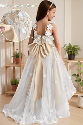 More information about Tulle Flower Girl Dresses for Wedding 3D Lace Bridesmaid First Communion Dress Princess Pageant Party Gown with Bow
