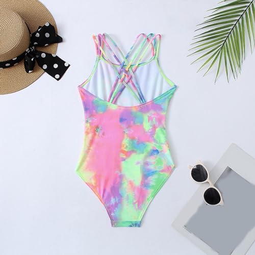 Kids One Piece Swimsuit Girls 7-14Years Cute Beach Summer Crossback Bathing Suit Back Criss Cross Swimwear 6