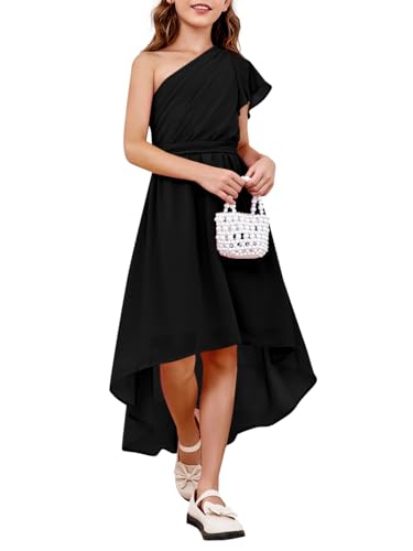 • Unique design: One shoulder ruffle dresses, solid color, hidden zipper closure, girls high low dress, asymmetrical hem, high waisted design, flower girls cute dress,a-line junior bridesmaid dress for girls