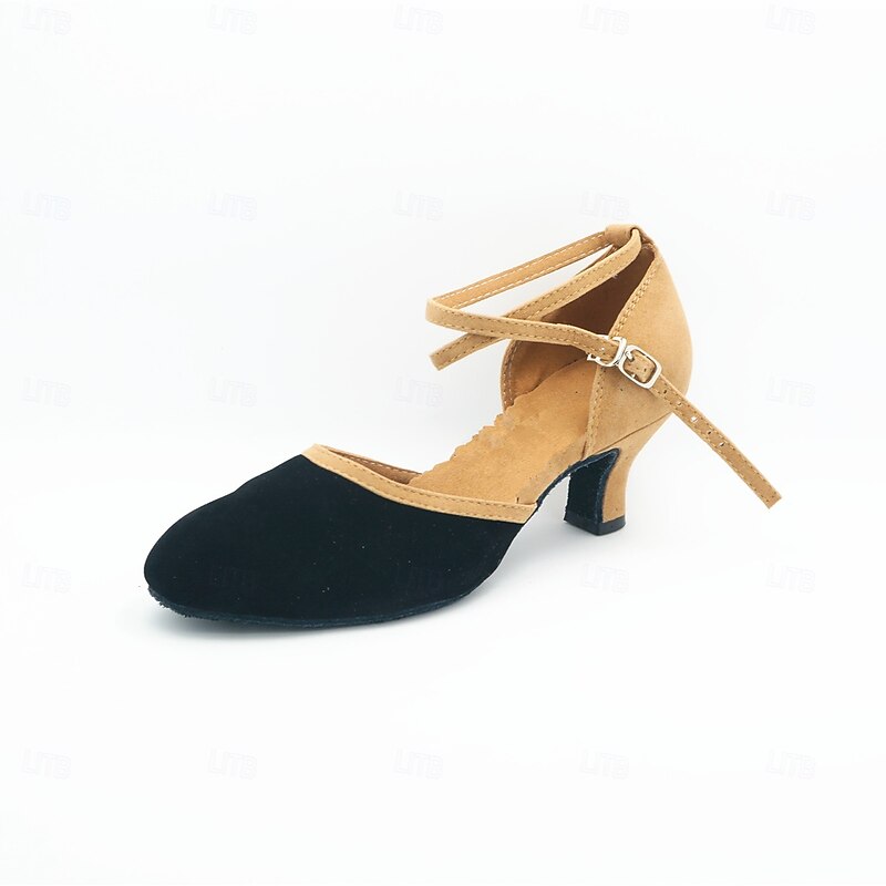 Highlights [Fabric] Crafted from high-quality suede, these shoes offer a smooth texture combined with durability, ensuring comfort with every step. The inner lining is made of soft fabric to enhance breathability and wearability, making them ideal for dance enthusiasts. [Silhouette] Featuring a comfortable mid-height Cuban heel, these shoes strike a perfect balance between elegance and practicality, providing the necessary support for extended dance sessions. The cross-strap design adds a touch of sophistication and enhances the overall silhouette. [Design Highlights] The standout design includes a fashionable two-tone color scheme with a rich royal blue front and an earthy beige back. The ankle strap is fastened with a simple buckle, ensuring stability and a secure, flattering fit. The cross-strap detail not only adds visual appeal but also helps in keeping the foot in place during movement. [Occasions] Perfect for ballroom dance genres such as Foxtrot and ChaCha, these heels are suitable for both formal events and practice sessions. Their versatile design also makes them appropriate for a range of occasions, from dance competitions to social gatherings. [Size Range] Available in sizes ranging from US5/EU35 to US11.5/EU43, these shoes cater to a variety of foot sizes. It is recommended to choose one size up for a comfortable fit if you have wider feet. Perfect for everyday use. superior materials and excellent craftsmanship ensure long-lasting durability.