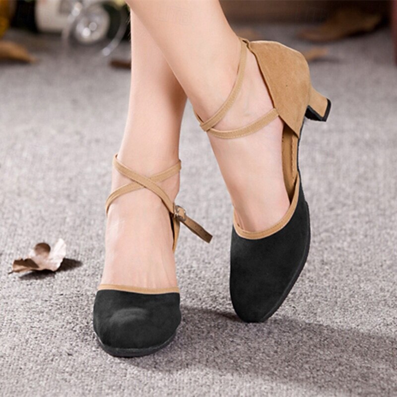 Women's Two-Tone Blue and Beige Suede Cross-Strap Dance Shoes, cozy Heels for Latin and Ballroom Dancing