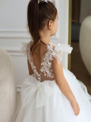 More information about Lace Applique Flower Girl Dress for Wedding Sparkle Tulle Bow Knot Ball Gowns Crew Neck Pageant Ceremony Long Dress