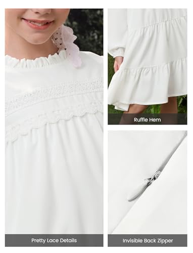 • Features: Girl's fall long sleeve dress features an ruffle neck that fancy and sweet , as well as the exquisite lace design. Also the combination of peplum hem, a-line, tiered flowy swing dresses , classic solid color and above knees length designs will bring your cute girl the fashionable look and trendy sense