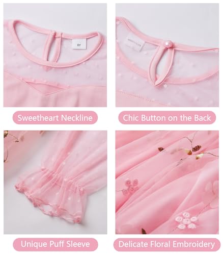 DAXIANG Girls Puff Long Sleeve Contrast Mesh Embroidery Tulle Flower Girl Dress Formal Wedding High Low Dress 5-14 Years 5