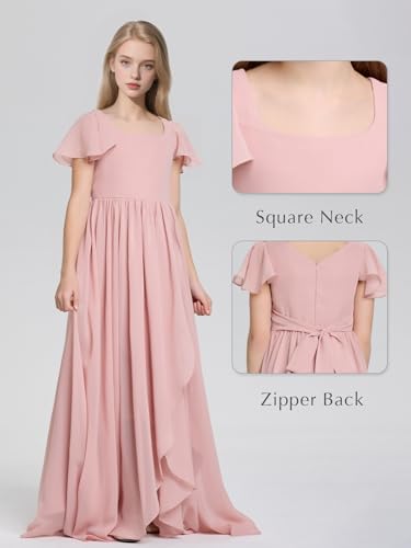 Junior Bridesmaid Dresses for Wedding Square Neck Chiffon Flower Girl Dress A Line Girls Formal Dresses Party 4