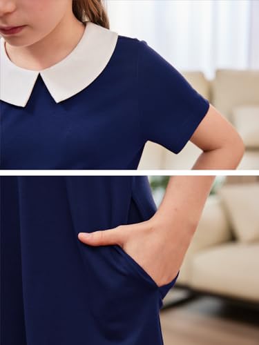 GORLYA Girls Vintage Collar Casual Loose Straight Swing T-Shirt Dress with Pockets 4-14Y 5