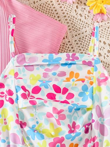 IFFEI Girls Summer Dress Sleeveless Floral Print Tiered Midi Dress Two Piece Set with Cardigan 3