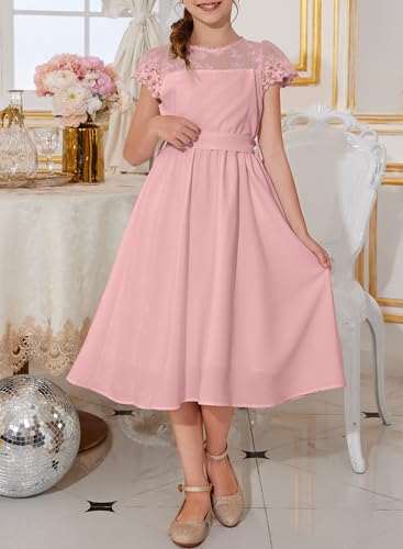 blibean Girls Summer Flower Dresses Semi Formal Lace Wedding Dress Size 6-15 Years 4