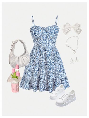 More information about SweatyRocks Girl's Floral Print Bowknot Cami Dress Spaghetti Strap A Line Summer Dresses