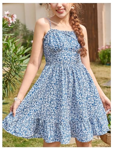 SweatyRocks Girl's Floral Print Bowknot Cami Dress Spaghetti Strap A Line Summer Dresses 6