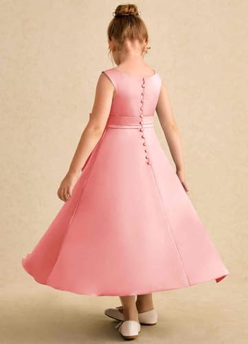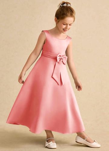 A-Line Princess Satin Flower Girl Dress Ankle-Length Sleeveless Junior Bridesmaid Dress with Bows 6