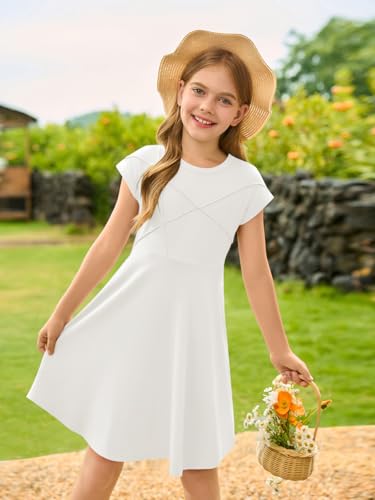 • Versatile Girls Short Sleeve Dress: Easily pair this basic dress with with straw hats, sneakers, flats, or sunglasses for a casual outdoor style. It also pairs perfectly with cardigans or jackets for cooler weather, offering versatility for summer, spring and fall