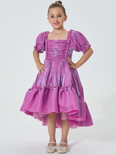 2Bunnies Girls Petticoat High-Low Ruffled Puff Sleeve Shimmer Birthday Gown Princess Dress 5