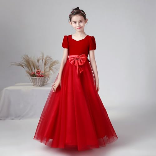 dideyttawl Velvet Christmas Dress for Girls 4-16 Puff Sleeves Tulle Baby Girl Long Dresses Satin Bow Tie Belt Maxi Dress 6