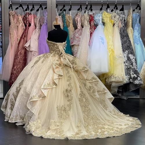 Ball Gown Wedding Dresses Sweeteart with Train Gold Embroidered Corset Prom Formal Dress 2025 3