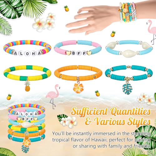 Color: MulticolorMaterial: acrylic, clayBrand: LandicalUnit Count: 24.0 CountOccasion: Birthday, Bachelorette Party, WeddingTropical Luau Party Bracelets Pack: this set includes 24 eye-catching Hawaiian friendship bracelets, with 6 styles and color palette that encapsulates the enchanting tropical vibe of Hawaii; Ideal for mixing, matching, or sharing with loved ones, they cater to all your daily accessory needsAdjustable Clay Beaded Bracelets: measuring approximately 18 cm (7.09 inches) in length with a comfortable elastic stretch, these bracelets effortlessly fit most wrist sizes; They're easy to slip on and off, offering style without any discomfort or pressureSummer Style: inspired by Hawaiian themes, these bracelets feature Aloha and BFF letters alongside iconic elements like pineapples, turtle leaves, shells, and plumeria; Their lively summer colors and playful designs make them a standout accessory that adds personality to any outfitExquisite Craftsmanship: expertly crafted from quality acrylic and clay, these bracelets are both sturdy and charming; They are not easy to fade and deform while providing a safe and comfortable wear, making them a vibrant addition to your everyday styleHawaiian Gift for Women: merging charm with practicality, these Hawaiian bracelets are ideal for various occasions, including Aloha-themed birthdays, summer beach parties, and pool gatherings; A delightful surprise for movie enthusiasts and a must-have for fans, family, besties, and friends Perfect for everyday use. top-grade materials and excellent craftsmanship ensure long-lasting durability.