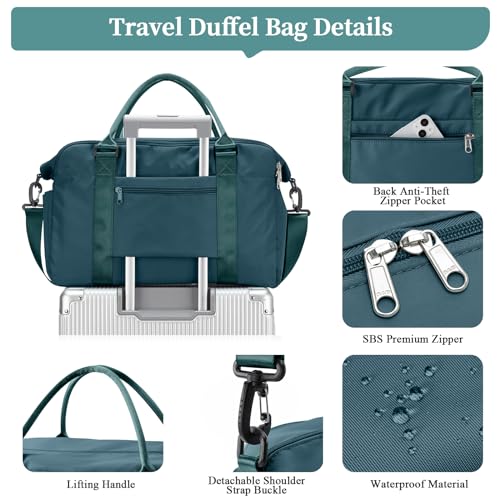 Travel Weekender Bag for Women,Travel Duffel Bag with Computer Compartment, Overnight Carry On Tote Bag with Trolley Sleeve for Weekend Travel Business Trip,Peacock Blue 5
