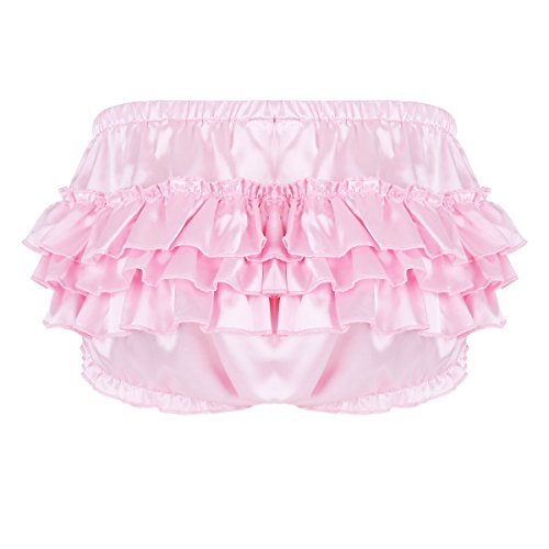 HOT ! Men's Shiny Satin Frilly Ruffled Briefs Sissy Crossdress Bloomer Tiered Skirted Panties