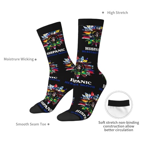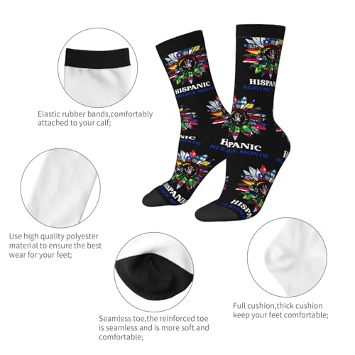 HOT ! Hispanic Heritage Month Socks For Men Women Outdoor Sports Running Hiking Wicking Crew Socks