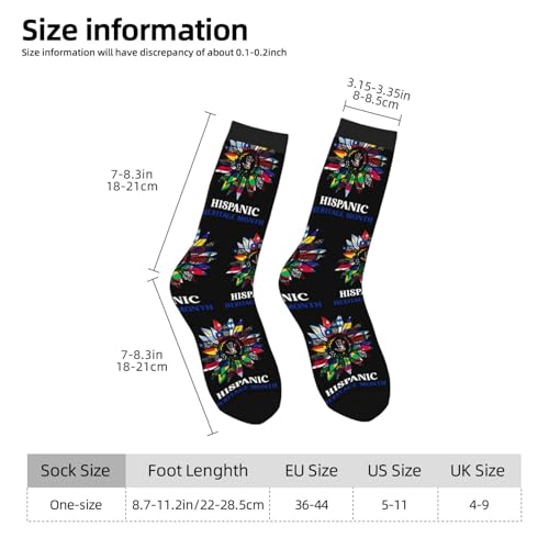 • Product Performance: This Hispanic Heritage Month Socks Made Of High Quality Polyester Fiber, Skin-Friendly And Comfortable, Moisture Wicking And Breathable, Not Easy To Pill. Good Elasticity, Complements Your Shoes And Clothes, Brings You An Overall Sense Of Fashion, And Can Be Reused For A Long Time.