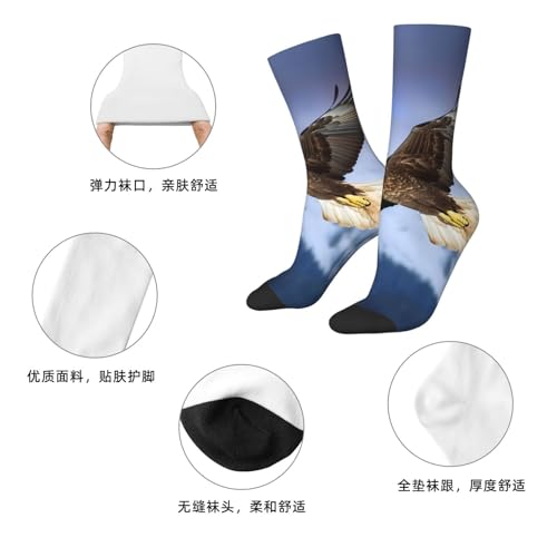 HOT ! Bald Eagle Flying Crew Socks Women Men Cushioned Athletic Socks Adult Calf Socks Casual Above Ankle Sock