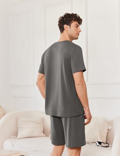 Ekouaer Mens Pajamas Set Cotton Short Sleeve Sleepwear 2 Piece Pj Sets for Men Soft Nightwear with Pockets S-XXL 2