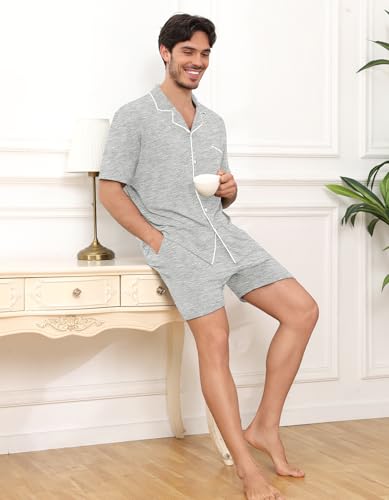 • Classic Design: The button-up men pjs top offers easy wear with an adjustable opening, while the contrast notch neck adds stylish layering. A chest pocket and shorts with two pockets hold essentials, the elastic waistband ensures a comfy fit for all body types